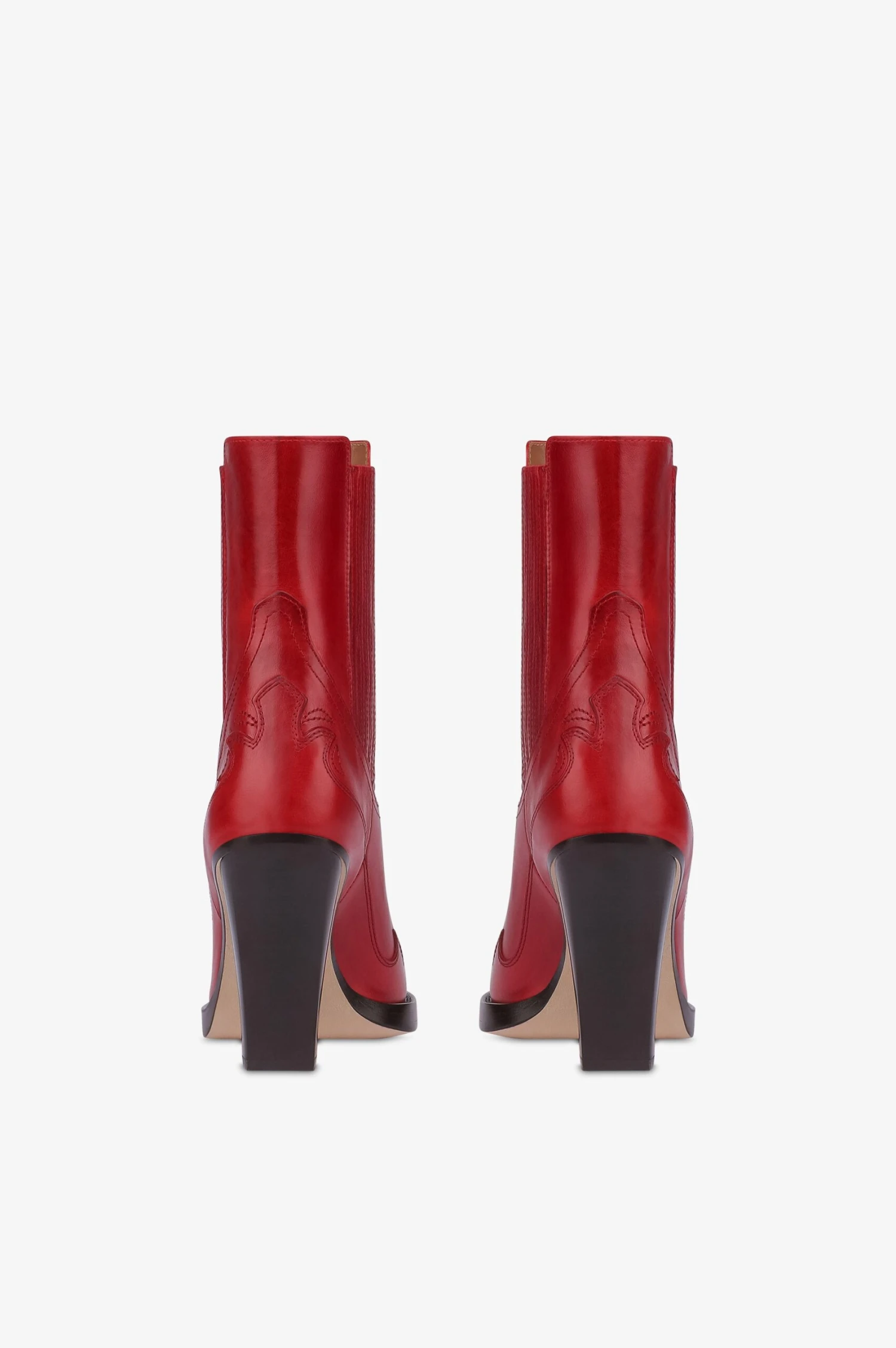 Ankle boots in ruby vintage-effect calf leather with Western-style embroidery. Made in Italy.