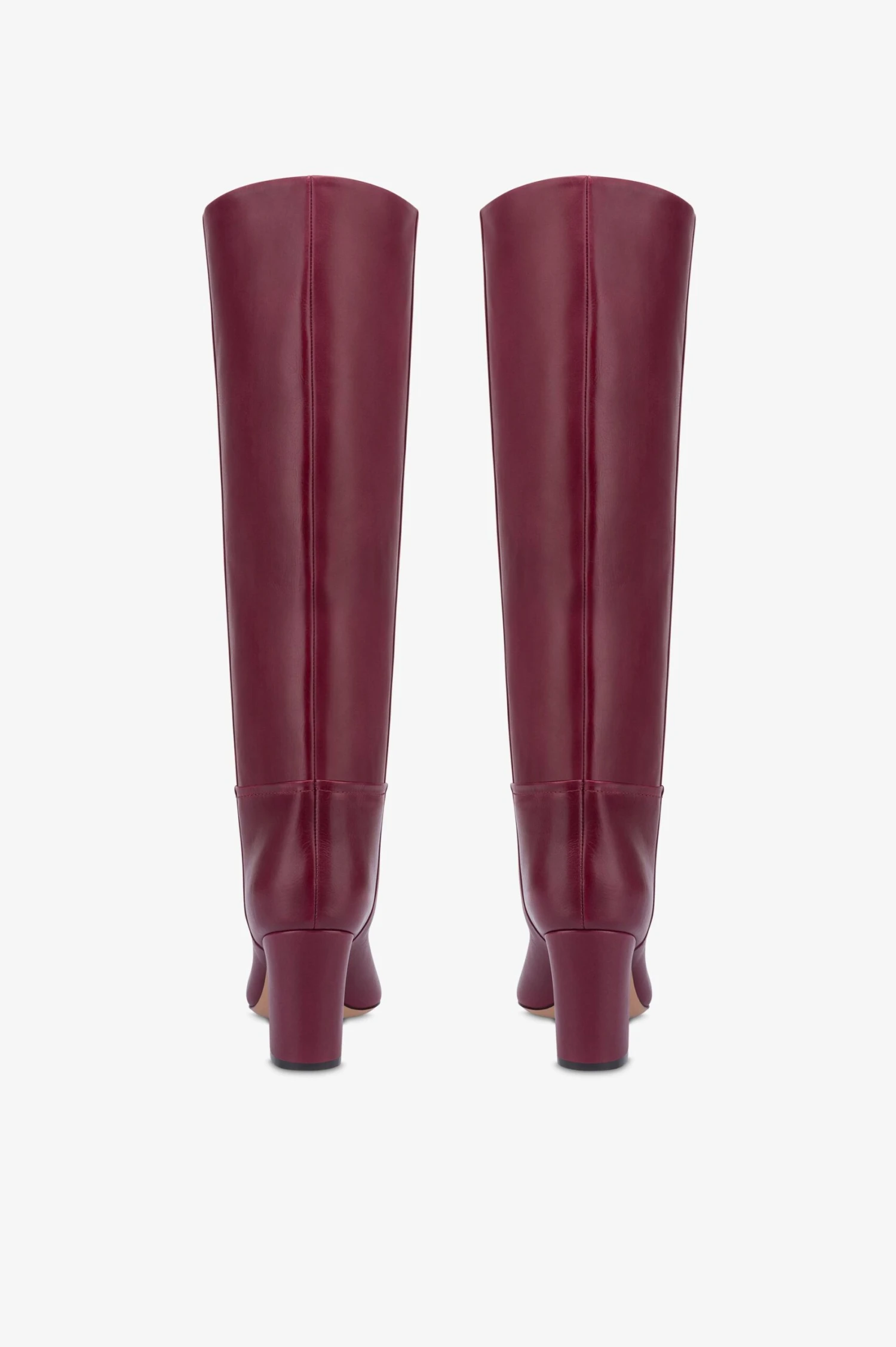 Round-toe boots in rouge noir calf leather. Covered chunky heel. Made in Italy.