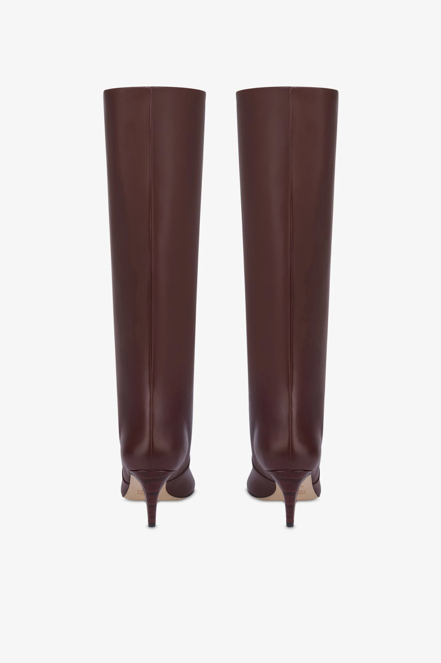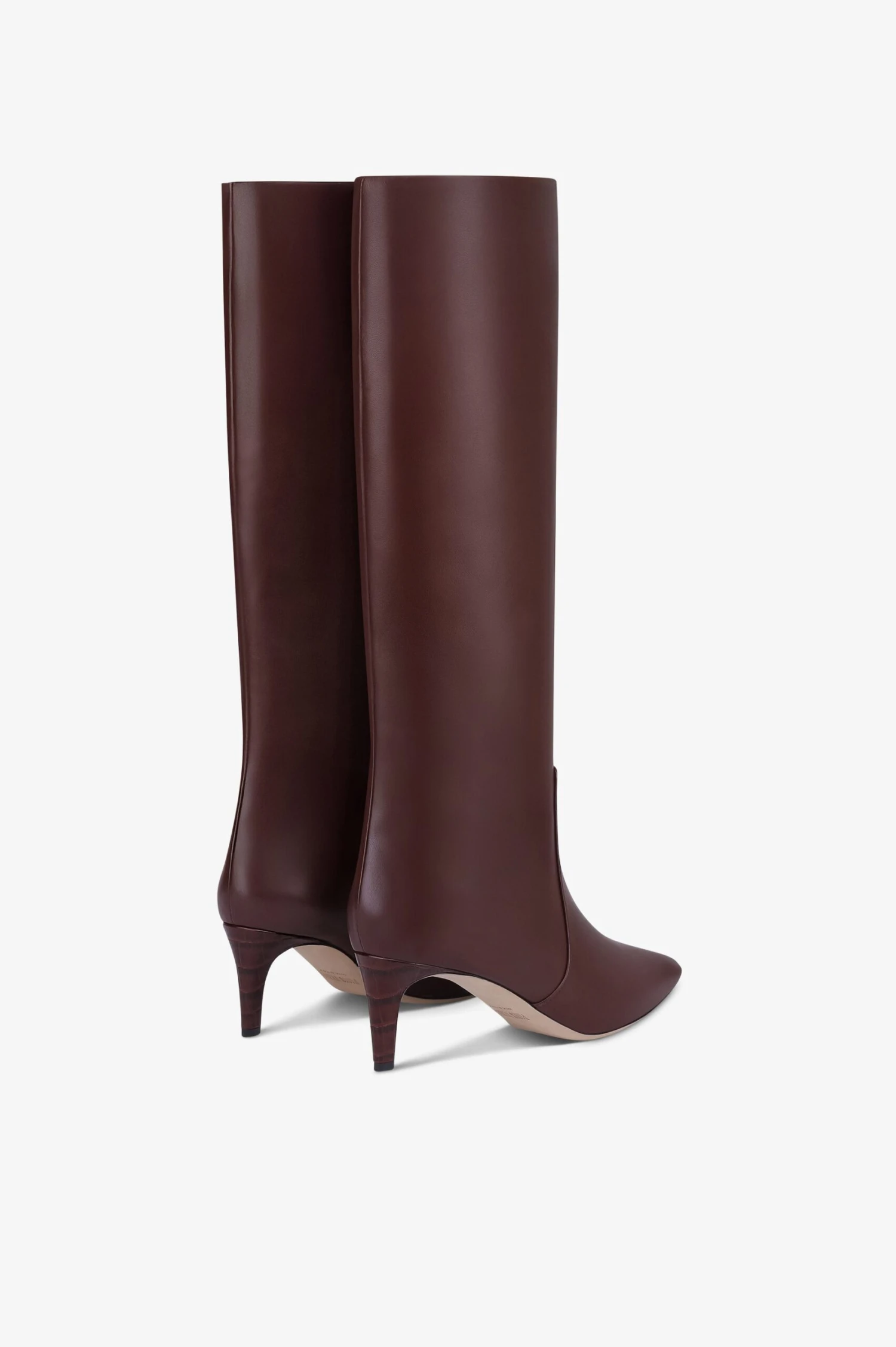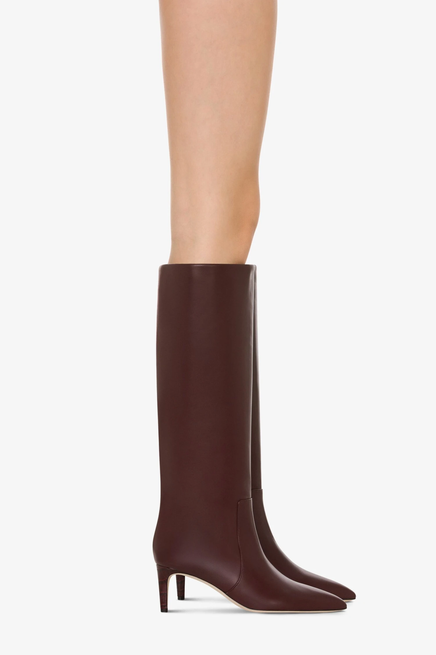 Pointed-toe boots in rouge noir leather with a stiletto heel. Made in Italy.