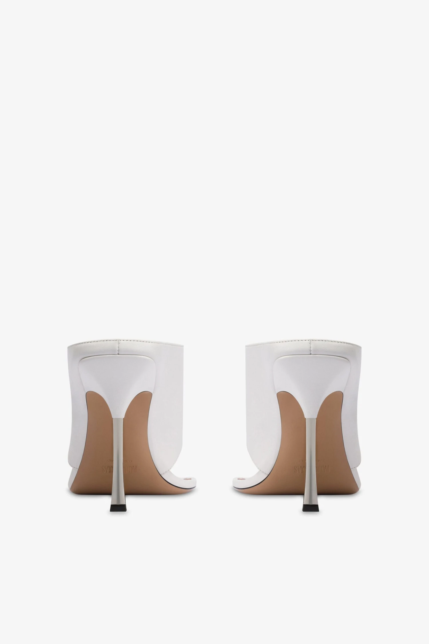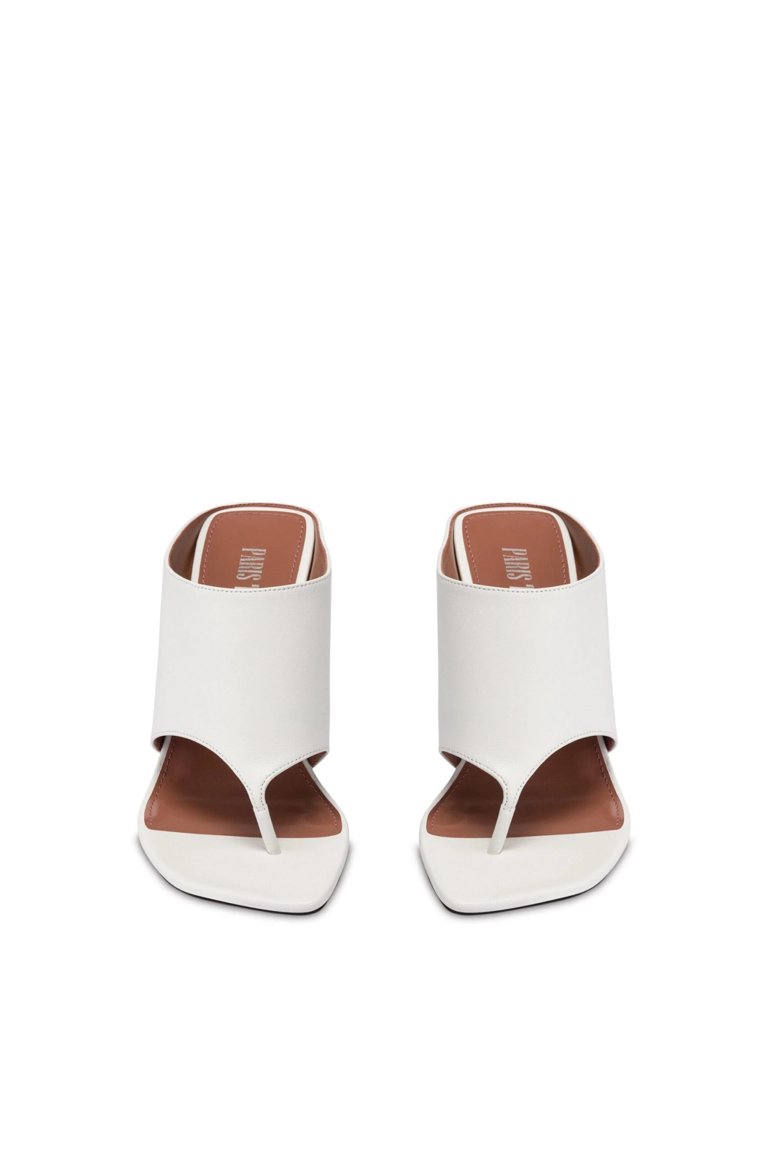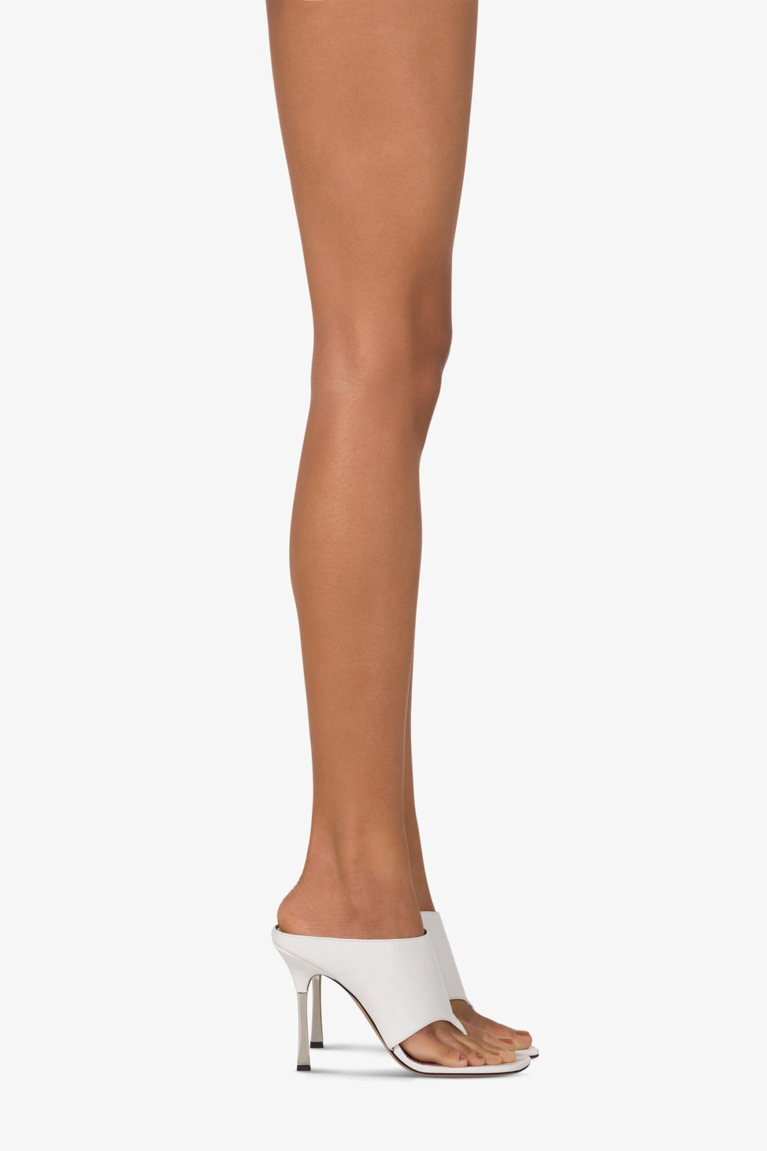Open-toe mules with a toe post in white leather with a contrasting silver galvanized heel. Made in Italy.