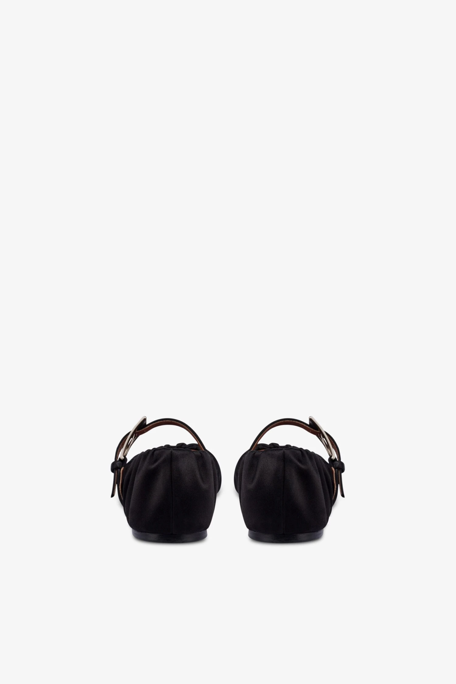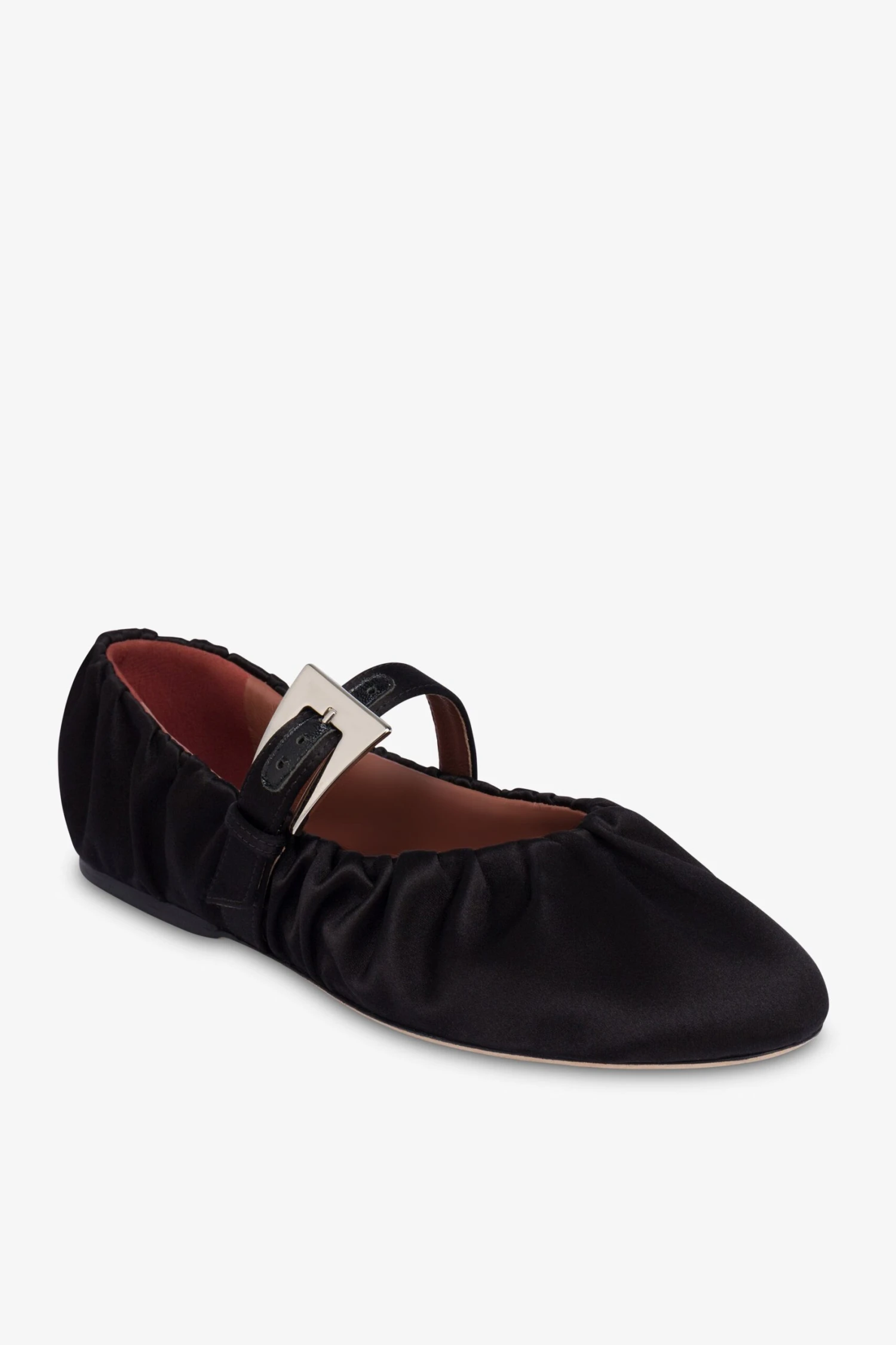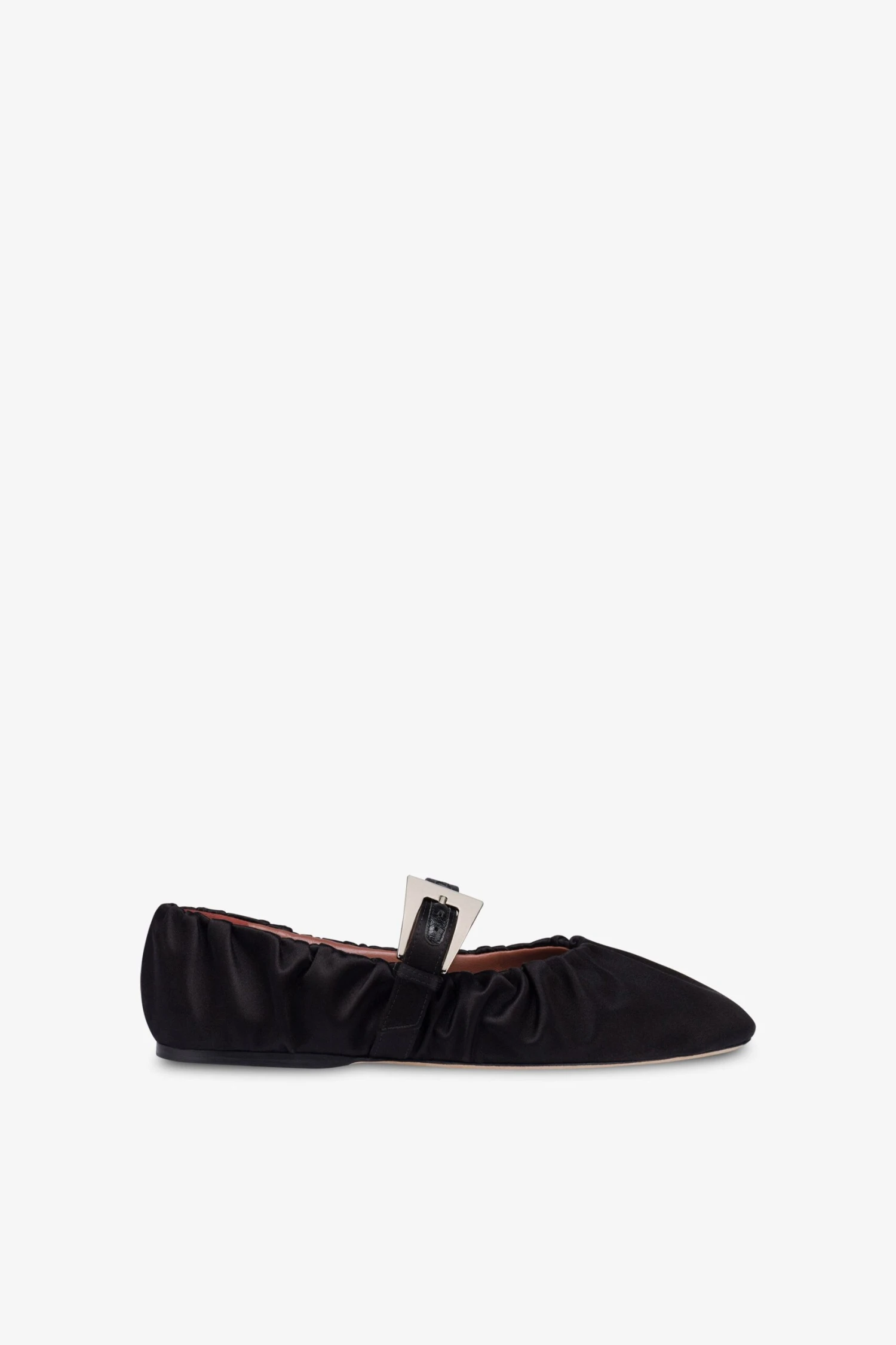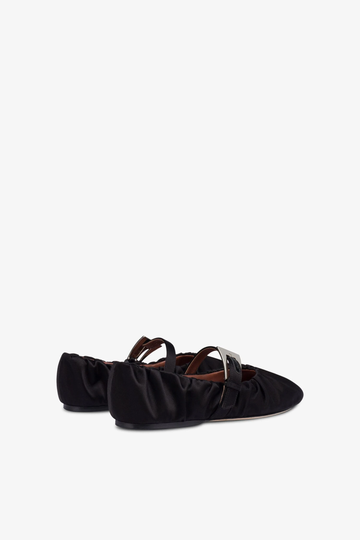 Round-toe ballet flats with a buckle in black satin. Made in Italy.