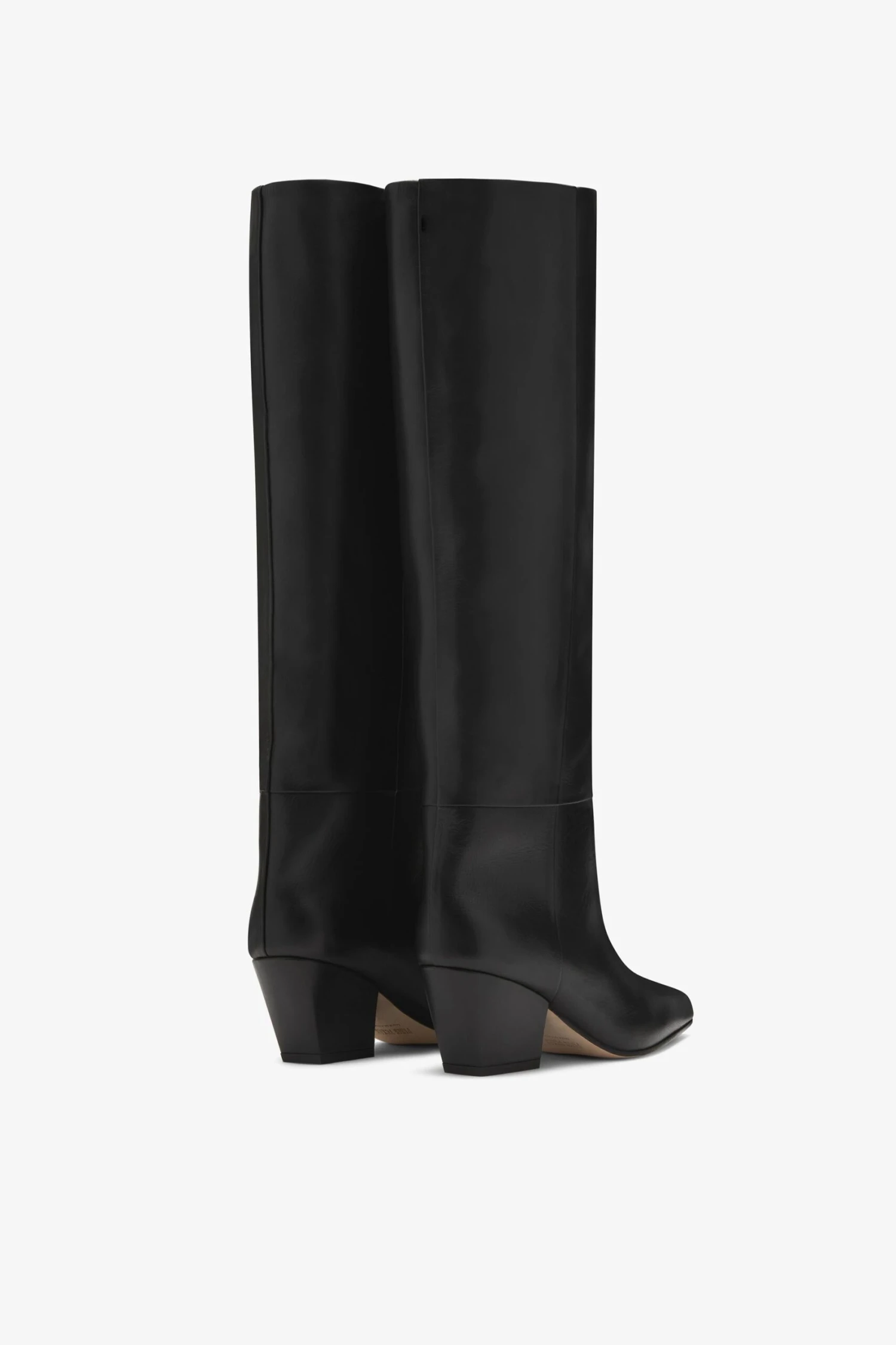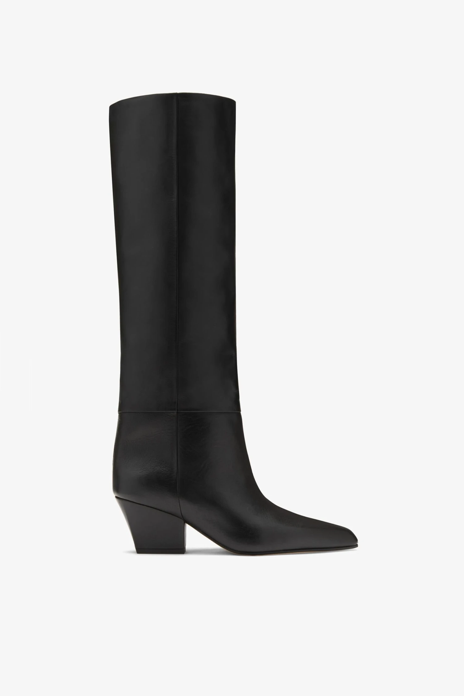 Jane knee-high boot with barrel shaft, slightly squared toe and 60 mm Texas-inspired heel. Made from black nappa leather.