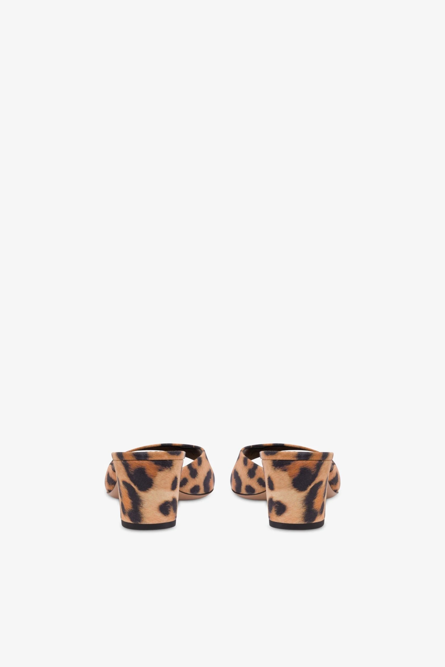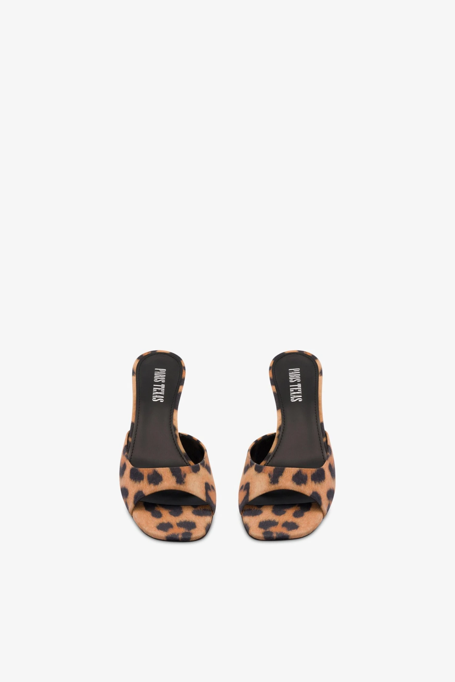 Open-toe mules with a covered block heel in natural leopard-print suede leather. Made in Italy.