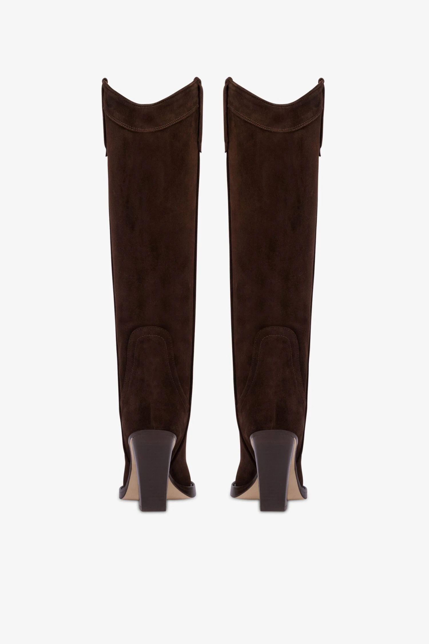 Paris Texas Pointed Knee-high Boots In Smooth Pepper Suede Leather