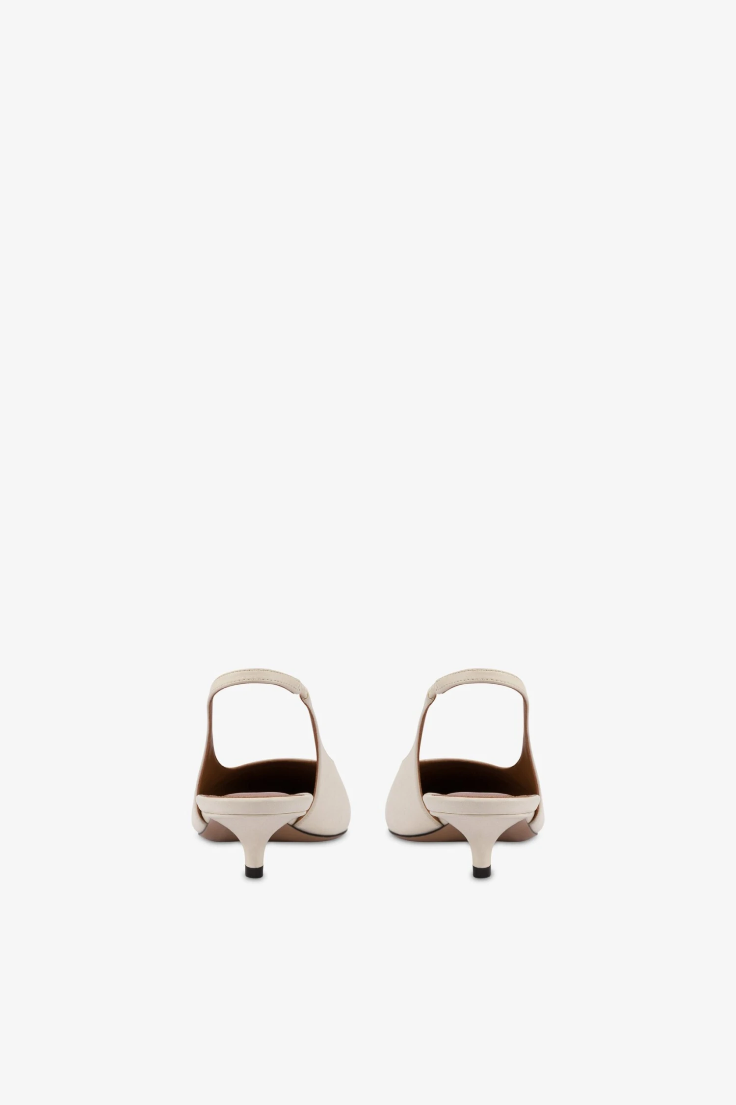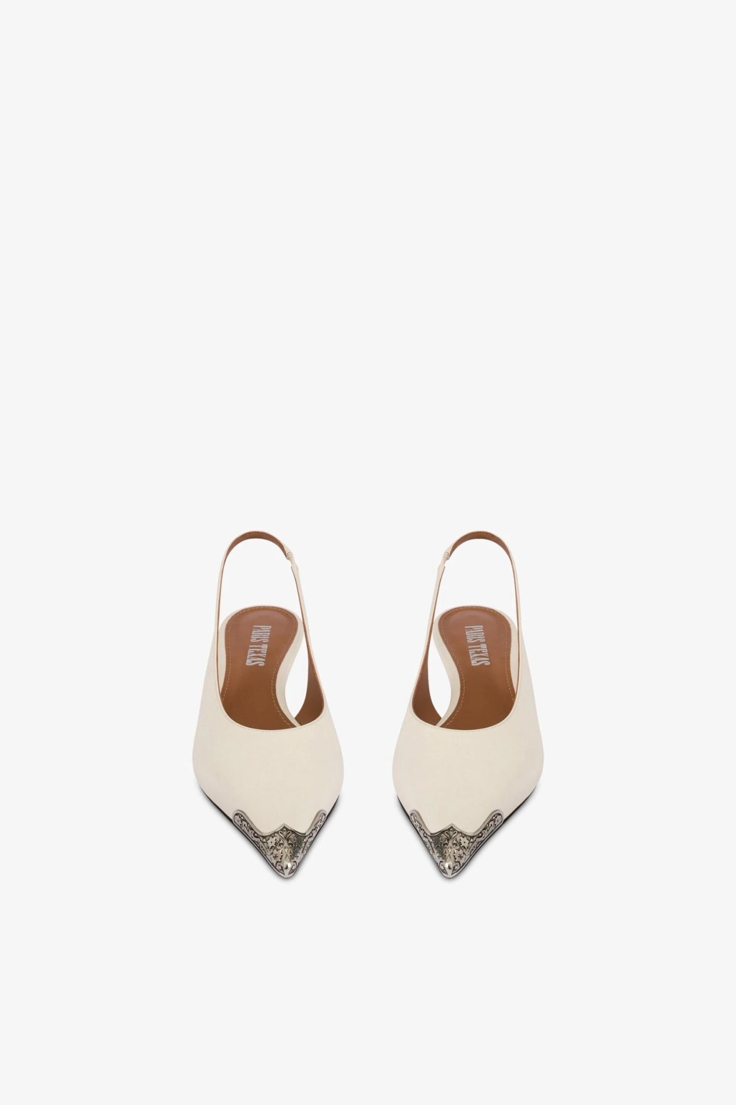 Pointed-toe slingbacks with a covered kitten heel and a metal toe cap in milk white leather. Made in Italy.