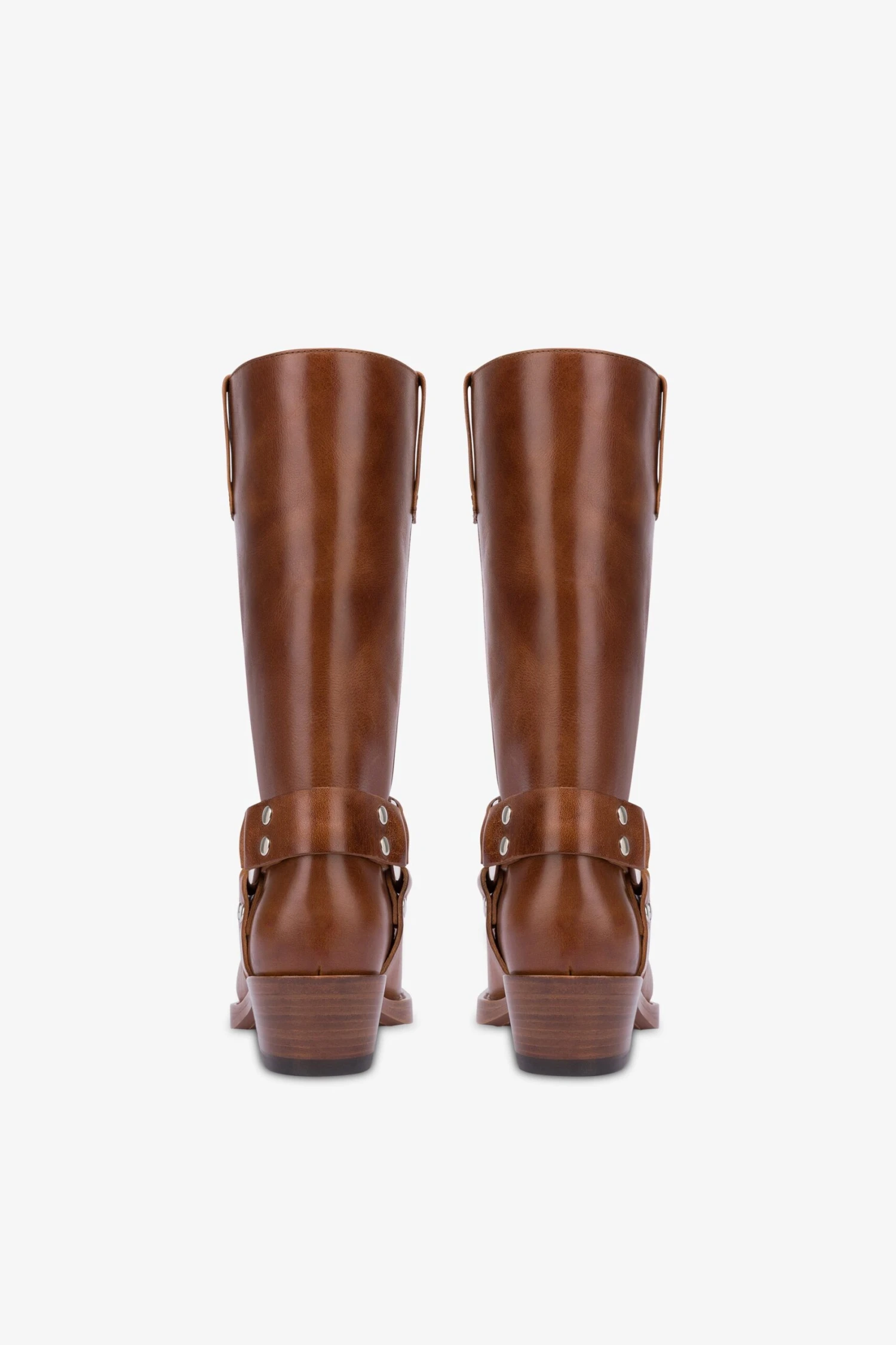 Ankle boots featuring a square toe set upon a medium fowler heel. Available in a shiny vintage leather version complete with pull straps and hardware around the ankles. Made in Italy from soft leather.