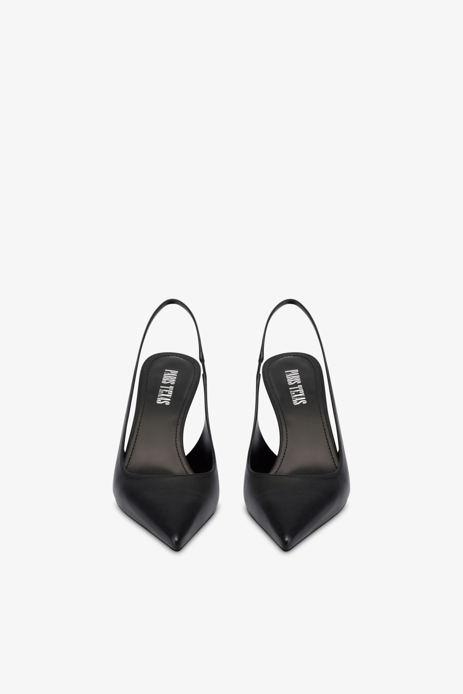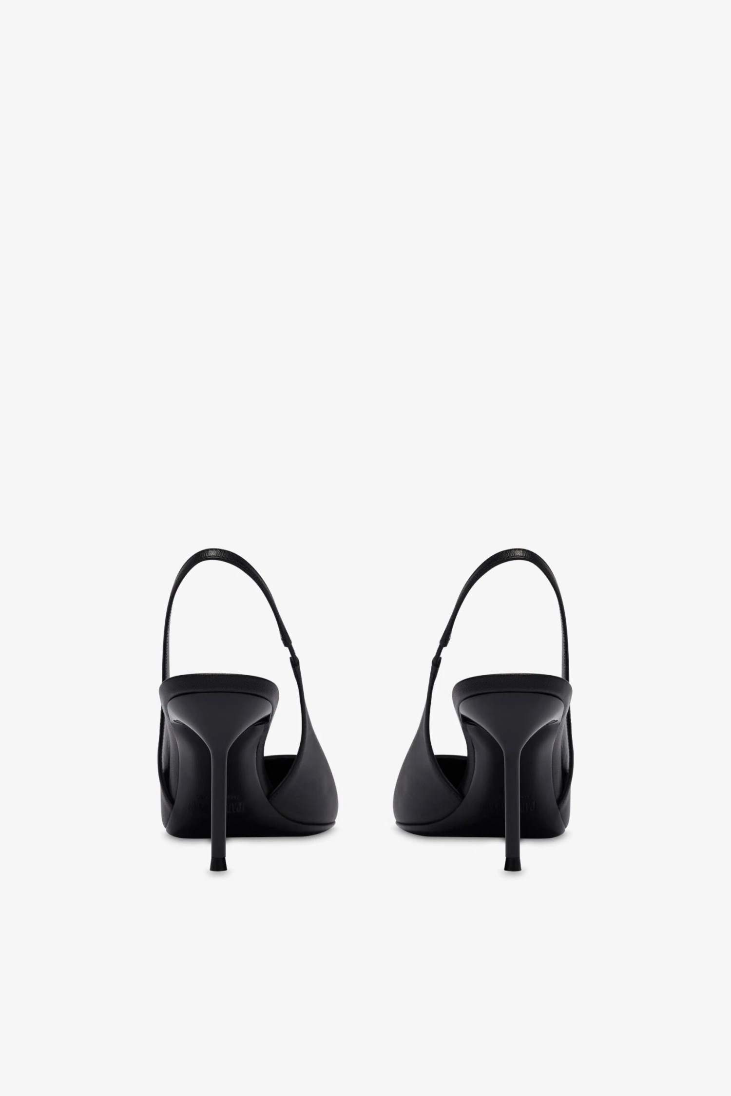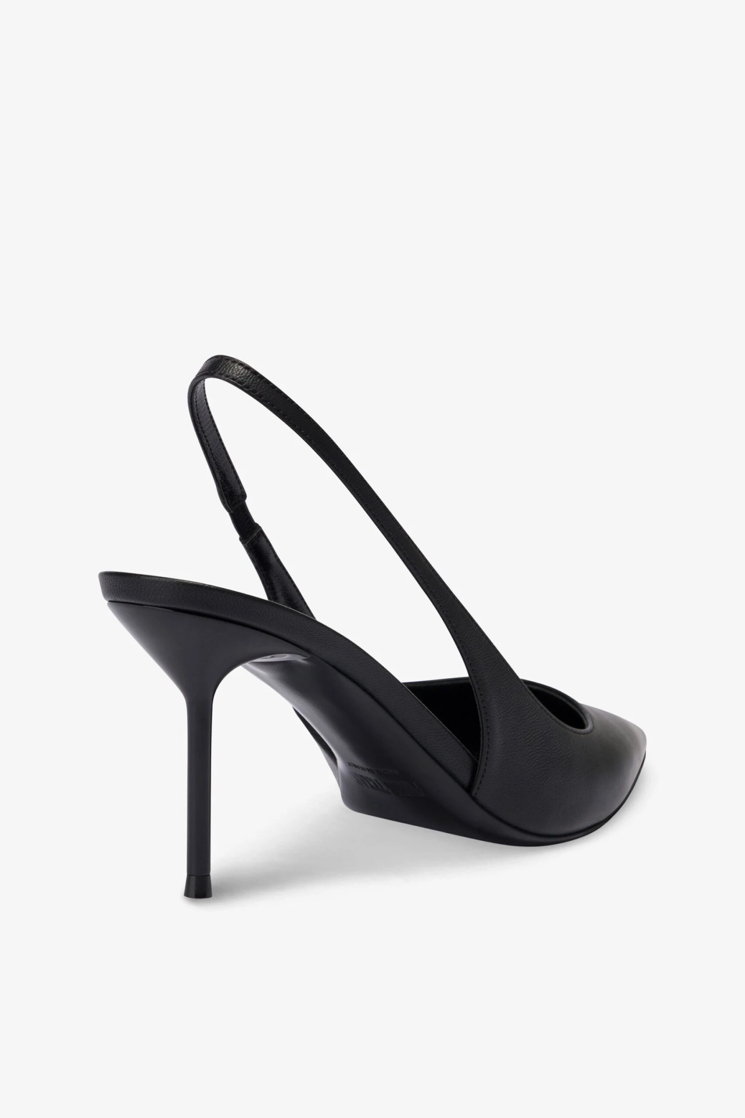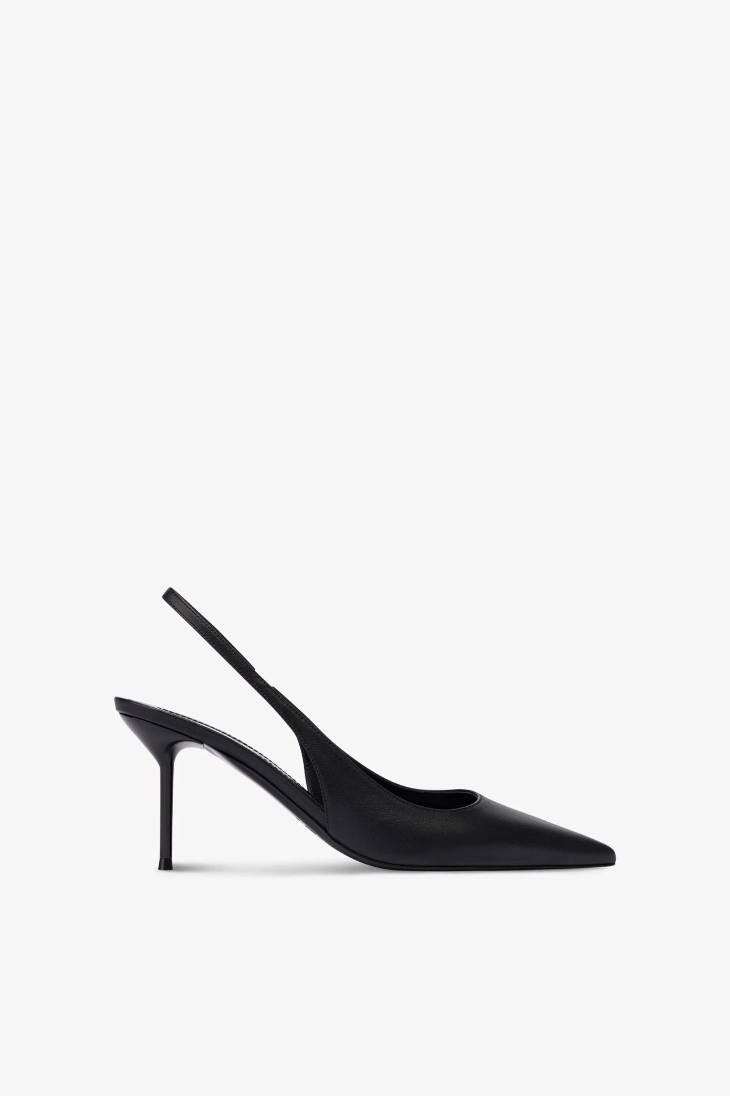 Pointed-toe slingbacks with a covered pin heel in black leather. Made in Italy.