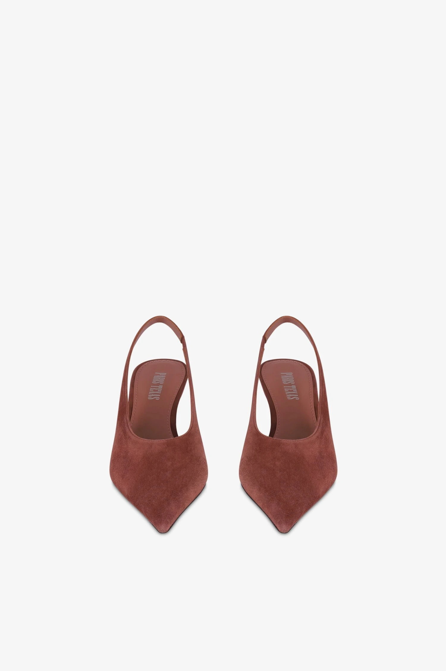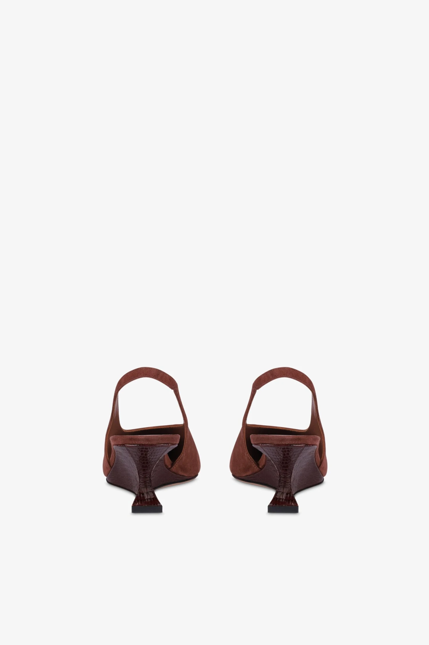 Slingbacks In Rouge Noir Suede Leather With Lizard Print Leather Heel