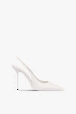 Pointed-toe slingbacks with a covered pin heel in white leather. Made in Italy.